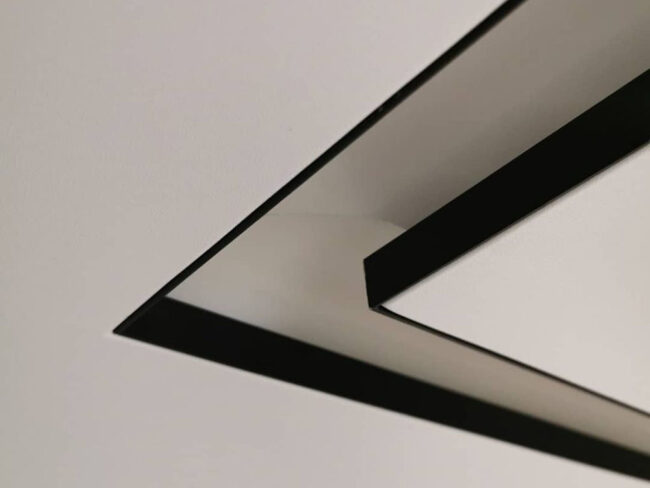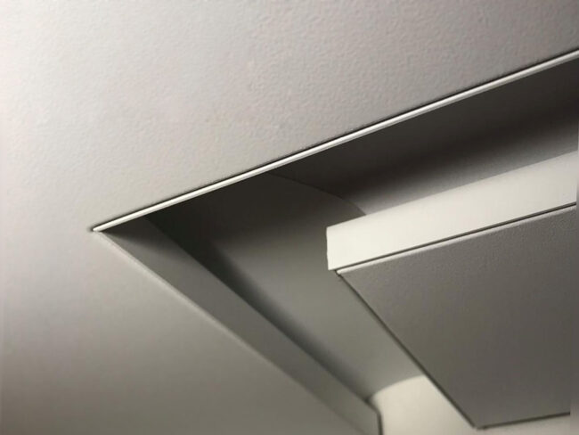 Специально разработанные металлические профили образуют чёткий декоративный зазор. Теневой контур не требует маскировки вставочной лентой.